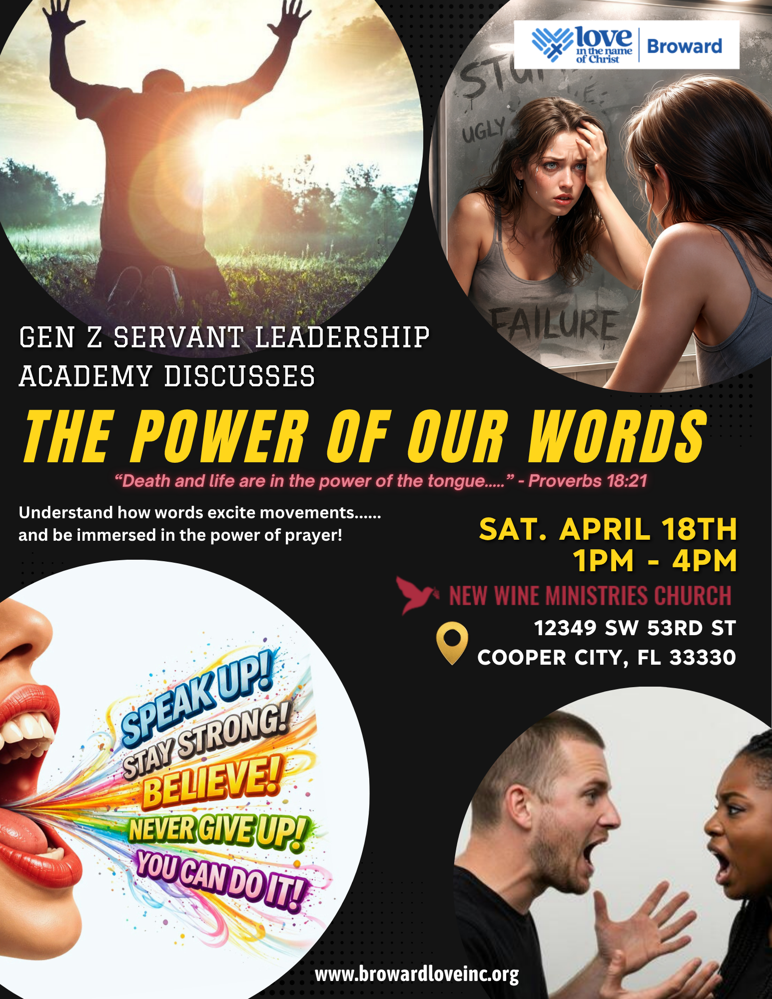 Love INC of Broward’s Servant Leadership Academy (SLA), is designed to be a program that provides an opportunity for Gen Z participants to not only be trained in how to serve their communities, but how to grow themselves into who God called them to be. Through teachings and hands-on engagement, a cohort of participants will learn how to manage their own mental health and emotions, sharpen critical thinking, conflict resolution, action planning, realize giftings, and much more as they impact the community through various service projects across Broward County.